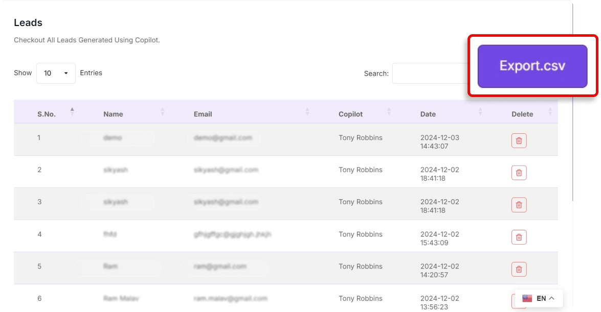 Instant Export of Lead Data